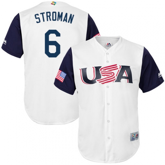 Men's USA Baseball Majestic #6 Marcus Stroman White 2017 World Baseball Classic Replica Team Jersey