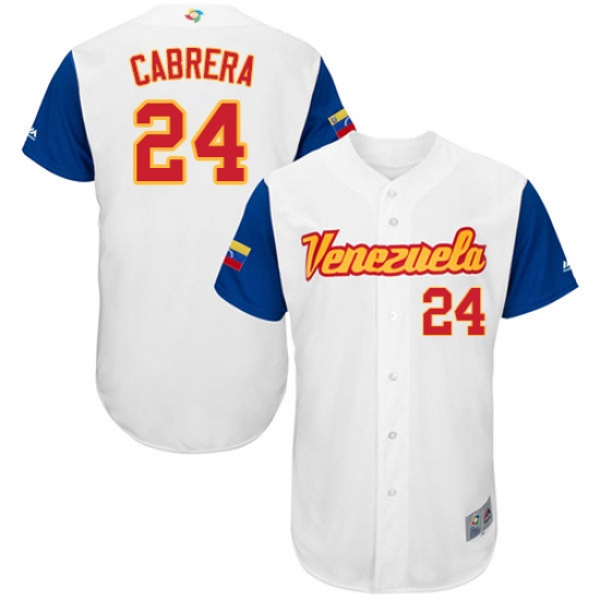 Men's Venezuela Baseball Majestic #24 Miguel Cabrera White 2017 World Baseball Classic Authentic Team Jersey