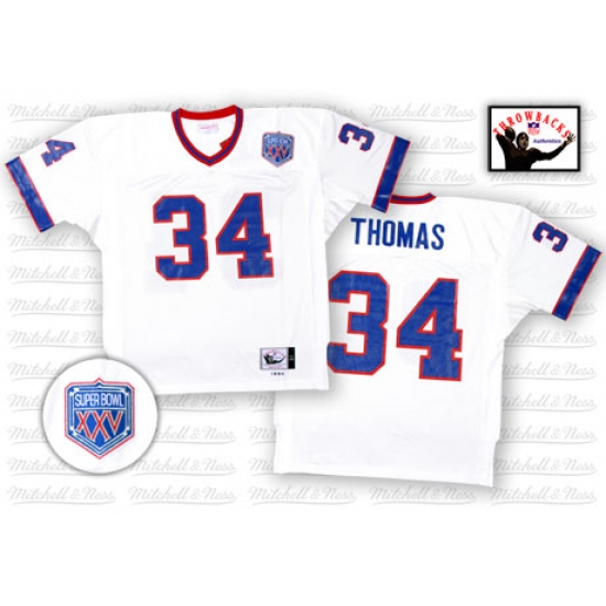 Home>NFL>Buffalo Bills>Thurman Thomas>Mitchell And Ness Buffalo Bills #34 Thurman Thomas White Authentic Throwback NFL Jersey