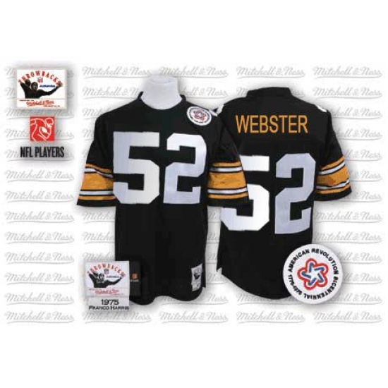 Feel like part of your favorite team by wearing this NFL® Mitchell And Ness Pittsburgh Steelers #52 Mike Webster Authentic Jersey Black Team Color Authentic Throwback NFL Jersey, made of thick, high-quality Pro-Brite fabric for a genuine gridiron look. The players number which 100% stitched is displayed in tackle twill on the chest, back and sleeves, along with the team name on the front. The players name which 100% stitched is displayed on a sewn-down nameplate at the back. 100% Pro-Brite nylon and 100% Pro-Brite polyester for body, 100% lycratalic spandex dazzle for Side Panels/Collar/Cuffs, NFL® Equipment patch sewn on the bottom of the front collar or fabric insert, NFL® Equipment jock tag with numeric sizing is applied to the lower left bottom of the jersey, Reebok® logo embroidered on each sleeve, Officially licensed.