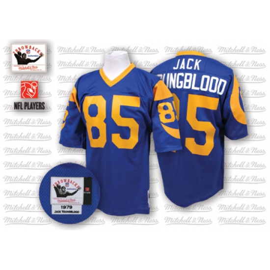 Feel like part of your favorite team by wearing this NFL® Mitchell and Ness Los Angeles Rams #85 Jack Youngblood Authentic 1979 Blue Throwback NFL Jersey, made of thick, high-quality Pro-Brite fabric for a genuine gridiron look. The players number which 100% stitched is displayed in tackle twill on the chest, back and sleeves, along with the team name on the front. The players name which 100% stitched is displayed on a sewn-down nameplate at the back. 100% Pro-Brite nylon and 100% Pro-Brite polyester for body, 100% lycratalic spandex dazzle for Side Panels/Collar/Cuffs, NFL® Equipment patch sewn on the bottom of the front collar or fabric insert, NFL® Equipment jock tag with numeric sizing is applied to the lower left bottom of the jersey, Officially licensed