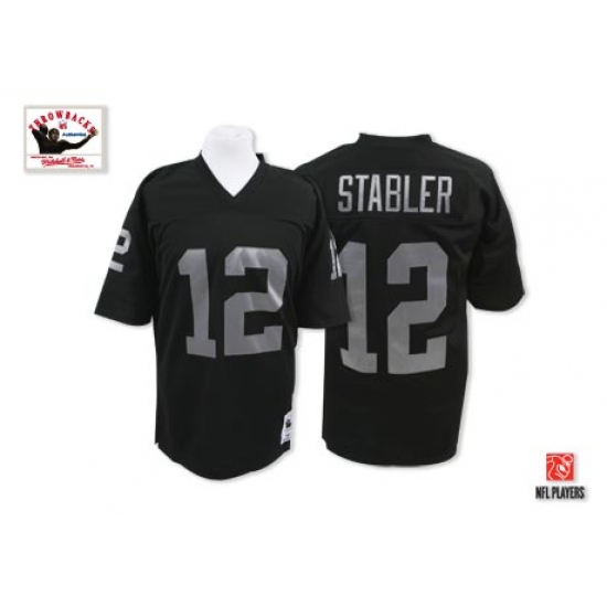 Feel like part of your favorite team by wearing this NFL® Mitchell and Ness Oakland Raiders #12 Kenny Stabler Black Team Color Authentic NFL Throwback Jersey, made of thick, high-quality Pro-Brite fabric for a genuine gridiron look. The players number which 100% stitched is displayed in tackle twill on the chest, back and sleeves, along with the team name on the front. The players name which 100% stitched is displayed on a sewn-down nameplate at the back. 100% Pro-Brite nylon and 100% Pro-Brite polyester for body, 100% lycratalic spandex dazzle for Side Panels/Collar/Cuffs, NFL® Equipment patch sewn on the bottom of the front collar or fabric insert, NFL® Equipment jock tag with numeric sizing is applied to the lower left bottom of the jersey, Officially licensed