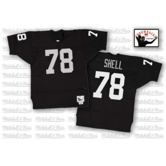Feel like part of your favorite team by wearing this NFL® Mitchell and Ness Oakland Raiders #78 Art Shell Black Team Color Authentic NFL Throwback Jersey, made of thick, high-quality Pro-Brite fabric for a genuine gridiron look. The players number which 100% stitched is displayed in tackle twill on the chest, back and sleeves, along with the team name on the front. The players name which 100% stitched is displayed on a sewn-down nameplate at the back. 100% Pro-Brite nylon and 100% Pro-Brite polyester for body, 100% lycratalic spandex dazzle for Side Panels/Collar/Cuffs, NFL® Equipment patch sewn on the bottom of the front collar or fabric insert, NFL® Equipment jock tag with numeric sizing is applied to the lower left bottom of the jersey, Officially licensed
