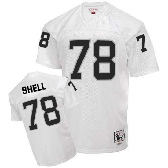 Feel like part of your favorite team by wearing this NFL® Mitchell and Ness Oakland Raiders #78 Art Shell White Authentic NFL Throwback Jersey, made of thick, high-quality Pro-Brite fabric for a genuine gridiron look. The players number which 100% stitched is displayed in tackle twill on the chest, back and sleeves, along with the team name on the front. The players name which 100% stitched is displayed on a sewn-down nameplate at the back. 100% Pro-Brite nylon and 100% Pro-Brite polyester for body, 100% lycratalic spandex dazzle for Side Panels/Collar/Cuffs, NFL® Equipment patch sewn on the bottom of the front collar or fabric insert, NFL® Equipment jock tag with numeric sizing is applied to the lower left bottom of the jersey, Officially licensed