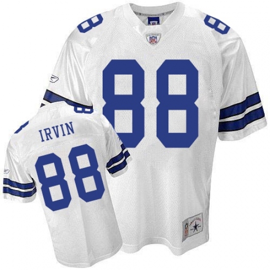 The high-quality Reebok Dallas Cowboys #88 Michael Irvin White Legend Throwback Premier EQT NFL Jersey is made of heavier fabric, with nylon diamond weave mesh. This team-colored jersey showcases the embroidered NFL® Equipment patch at the point on the v-neck collar and a team specific jock tag at the lower left front above the hem. The officially licensed Premier jersey proudly displays the sewn on, single-layer tackle twill team graphics at the chest, back and sleeves. Players name which is stiched shown at the upper back on a sewn down nameplate, The players number which 100% stitched is displayed in tackle twill on the chest, back and sleeves, NFL® Equipment jock tag shown at lower left front above the hem, Decorated in the team colors, Officially licensed.