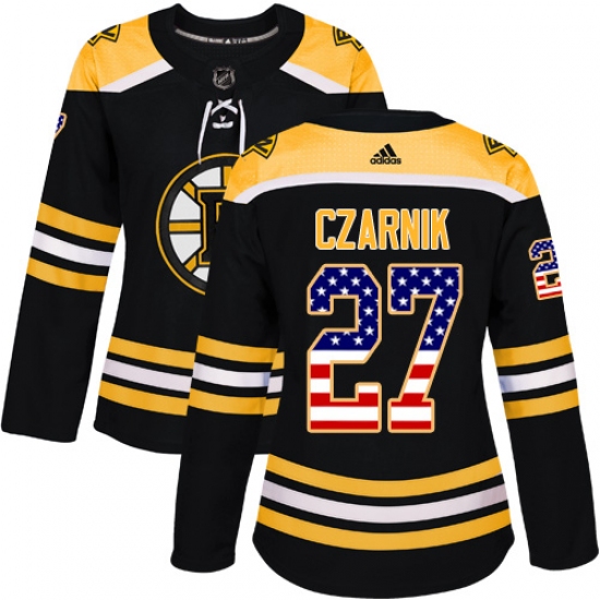 Home>NHL>Boston Bruins>Austin Czarnik>Women's Adidas Boston Bruins #27 Austin Czarnik Authentic Black USA Flag Fashion NHL Jersey