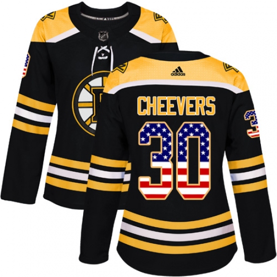 Women's Adidas Boston Bruins #30 Gerry Cheevers Authentic Black USA Flag Fashion NHL Jersey