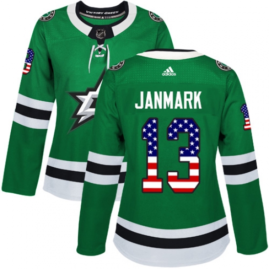 Home>NHL>Dallas Stars>Mattias Janmark>Women's Adidas Dallas Stars #13 Mattias Janmark Authentic Green USA Flag Fashion NHL Jersey