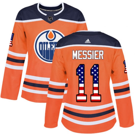 Home>NHL>Edmonton Oilers>Mark Messier>Women's Adidas Edmonton Oilers #11 Mark Messier Authentic Orange USA Flag Fashion NHL Jersey