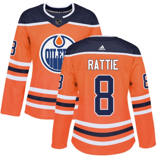 Home>NHL>Edmonton Oilers>Ty Rattie>Women's Adidas Edmonton Oilers #8 Ty Rattie Authentic Orange Home NHL Jersey