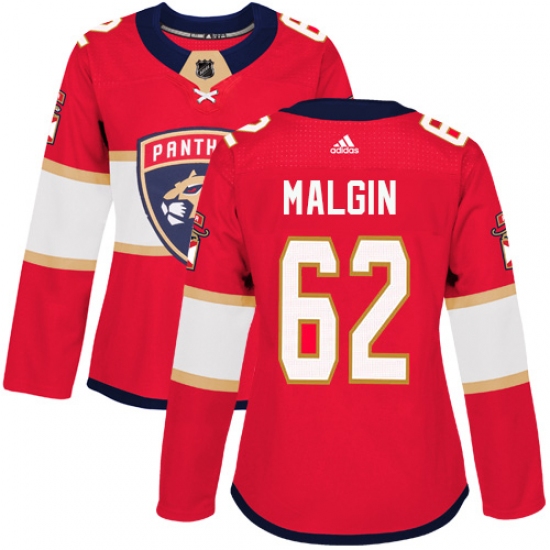 Home>NHL>Florida Panthers>Denis Malgin>Women's Adidas Florida Panthers #62 Denis Malgin Premier Red Home NHL Jersey