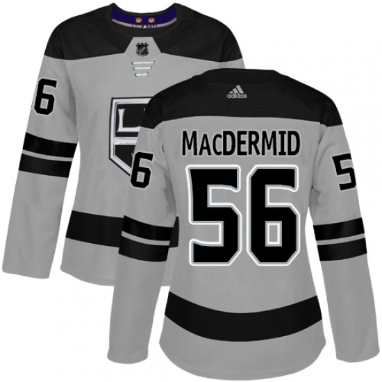 >Women's Adidas Los Angeles Kings #56 Kurtis MacDermid Authentic Gray Alternate NHL Jersey