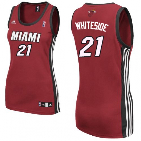 Home>NBA>Miami Heat>Hassan Whiteside>Women's Adidas Miami Heat #21 Hassan Whiteside Authentic Red Alternate NBA Jersey