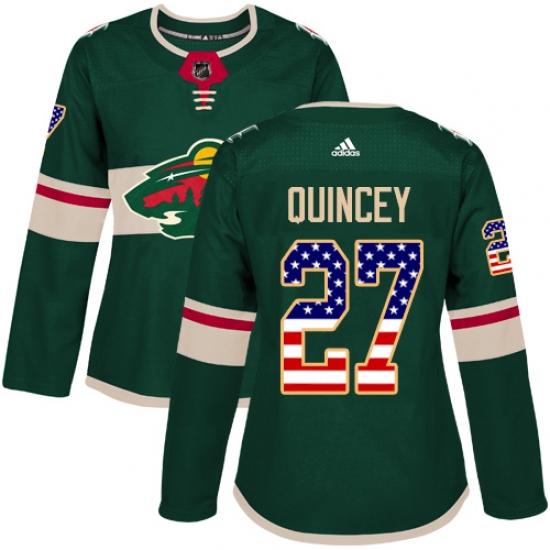 Home>NHL>Minnesota Wild>Kyle Quincey>Women's Adidas Minnesota Wild #27 Kyle Quincey Authentic Green USA Flag Fashion NHL Jersey