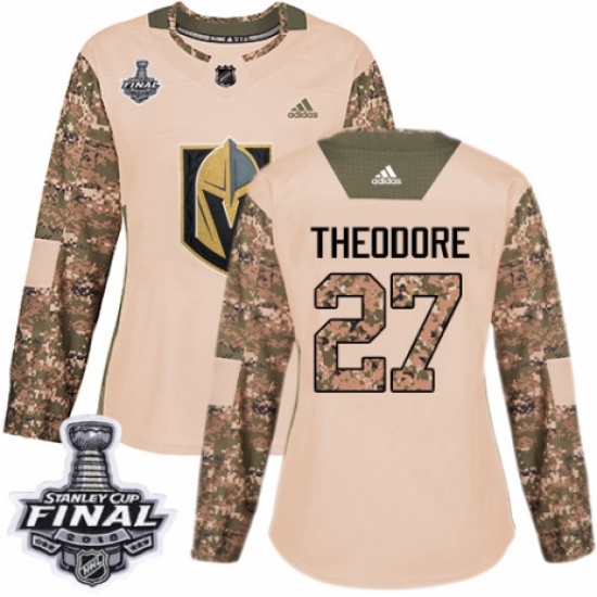 >Women's Adidas Vegas Golden Knights #27 Shea Theodore Authentic Camo Veterans Day Practice 2018 Stanley Cup Final NHL Jersey