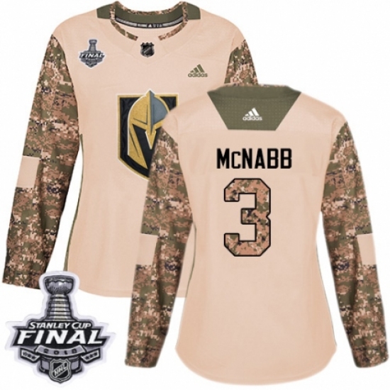 Women's Adidas Vegas Golden Knights #3 Brayden McNabb Authentic Camo Veterans Day Practice 2018 Stanley Cup Final NHL Jersey