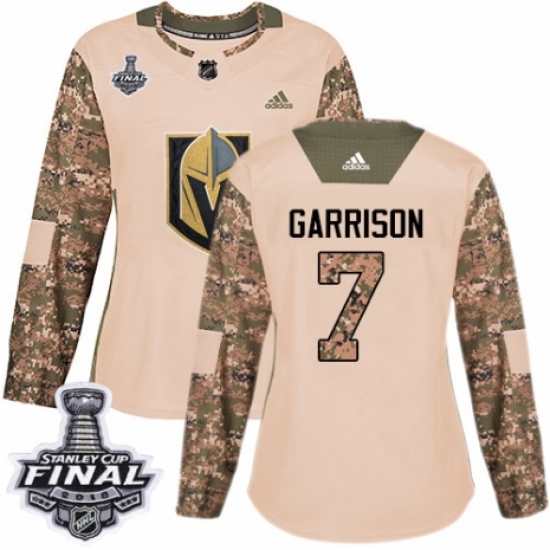 >Women's Adidas Vegas Golden Knights #7 Jason Garrison Authentic Camo Veterans Day Practice 2018 Stanley Cup Final NHL Jersey