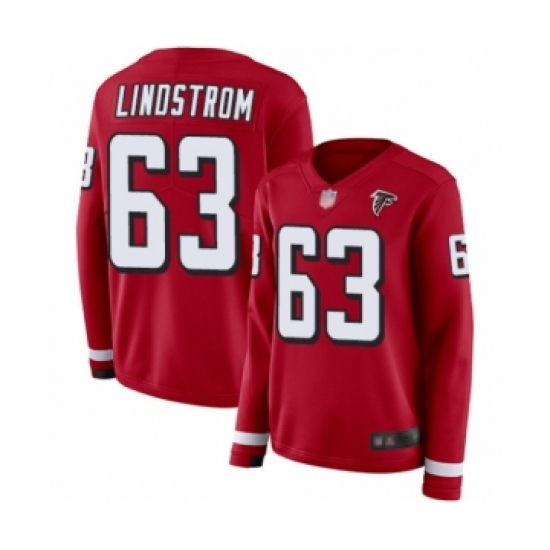 >Women's Atlanta Falcons #63 Chris Lindstrom Limited Red Therma Long Sleeve Football Jersey