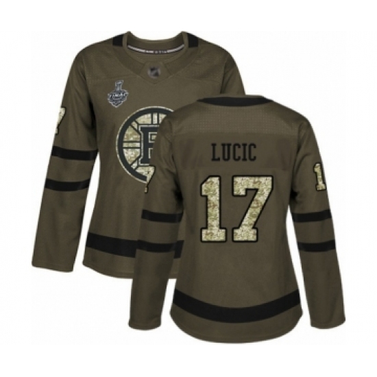 Women's Boston Bruins #17 Milan Lucic Authentic Green Salute to Service 2019 Stanley Cup Final Bound Hockey Jersey