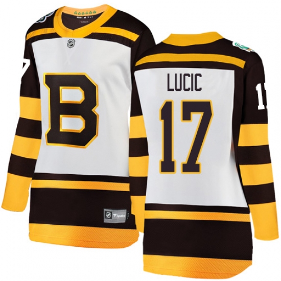 >Women's Boston Bruins #17 Milan Lucic White 2019 Winter Classic Fanatics Branded Breakaway NHL Jersey