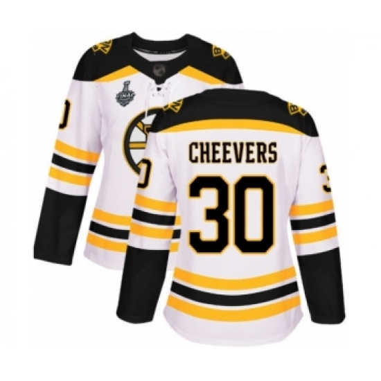 Women's Boston Bruins #30 Gerry Cheevers Authentic White Away 2019 Stanley Cup Final Bound Hockey Jersey