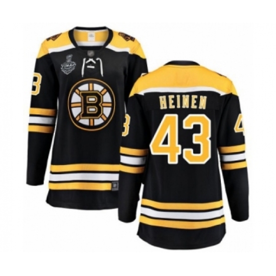 >Women's Boston Bruins #43 Danton Heinen Authentic Black Home Fanatics Branded Breakaway 2019 Stanley Cup Final Bound Hockey Jersey
