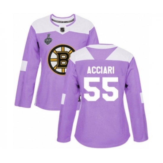 Women's Boston Bruins #55 Noel Acciari Authentic Purple Fights Cancer Practice 2019 Stanley Cup Final Bound Hockey Jersey