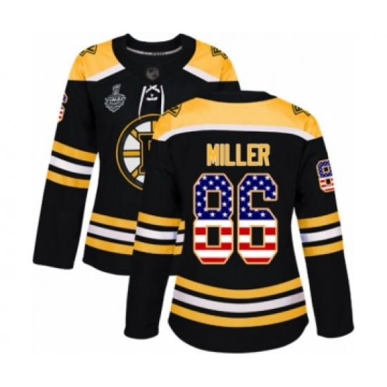 Women's Boston Bruins #86 Kevan Miller Authentic Black USA Flag Fashion 2019 Stanley Cup Final Bound Hockey Jersey