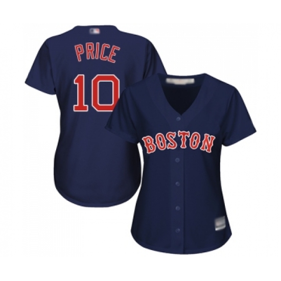 >Women's Boston Red Sox #10 David Price Replica Navy Blue Alternate Road Baseball Jersey