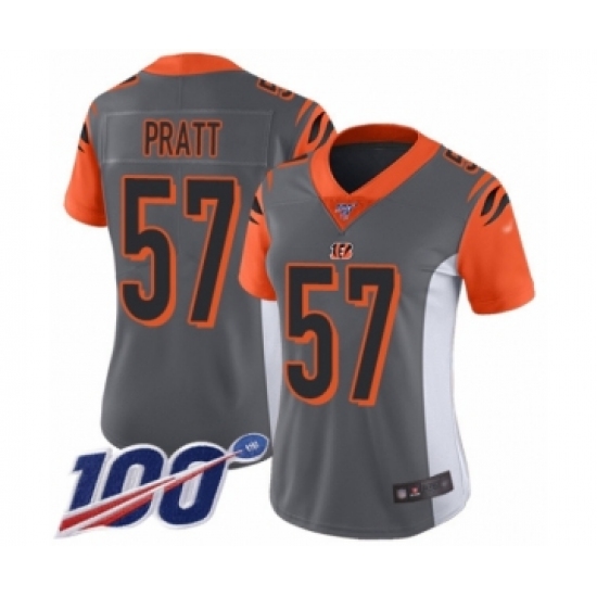 Women's Cincinnati Bengals #57 Germaine Pratt Limited Silver Inverted Legend 100th Season Football Jersey