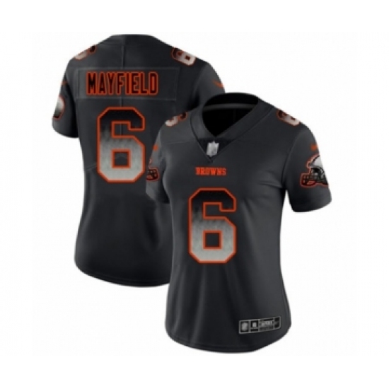 Women's Cleveland Browns #6 Baker Mayfield Limited Black Smoke Fashion Football Jersey