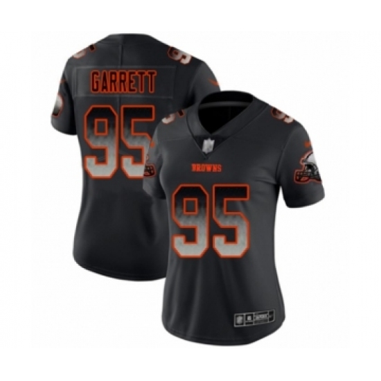 >Women's Cleveland Browns #95 Myles Garrett Limited Black Smoke Fashion Football Jersey