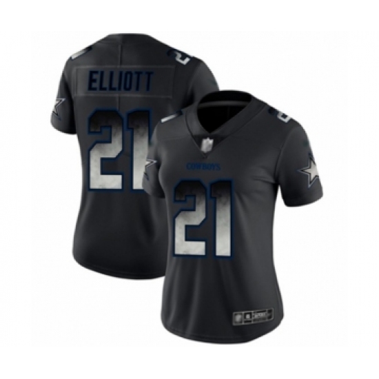 Women's Dallas Cowboys #21 Ezekiel Elliott Black Smoke Fashion Limited Football Jersey