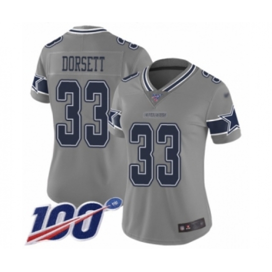 >Women's Dallas Cowboys #33 Tony Dorsett Limited Gray Inverted Legend 100th Season Football Jersey