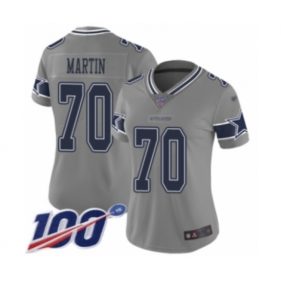 >Women's Dallas Cowboys #70 Zack Martin Limited Gray Inverted Legend 100th Season Football Jersey