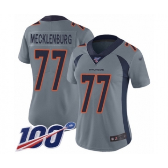 >Women's Denver Broncos #77 Karl Mecklenburg Limited Silver Inverted Legend 100th Season Football Jersey