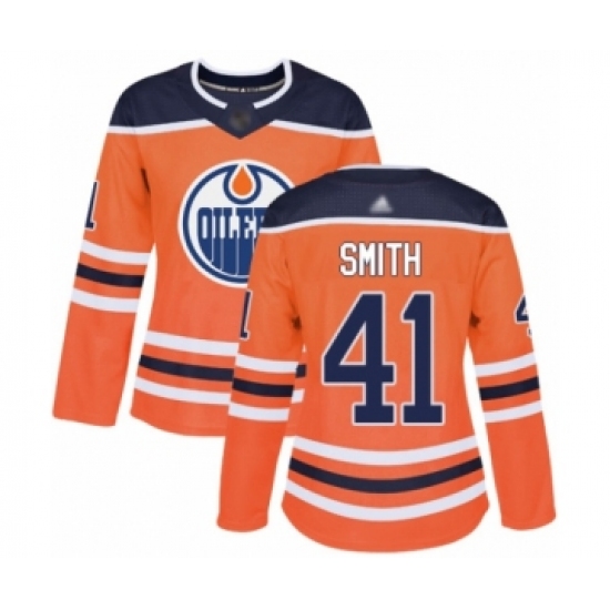 Women's Edmonton Oilers #41 Mike Smith Authentic Orange Home Hockey Jersey