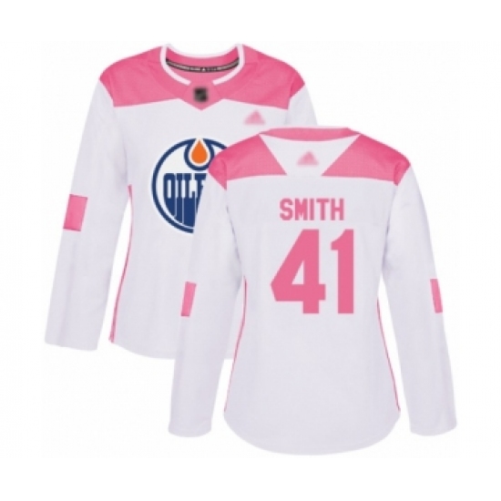 Women's Edmonton Oilers #41 Mike Smith Authentic White Pink Fashion Hockey Jersey