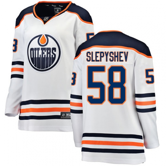 Home>NHL>Edmonton Oilers>Anton Slepyshev>Women's Edmonton Oilers #58 Anton Slepyshev Authentic White Away Fanatics Branded Breakaway NHL Jersey