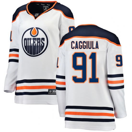 Home>NHL>Edmonton Oilers>Drake Caggiula>Women's Edmonton Oilers #91 Drake Caggiula Authentic White Away Fanatics Branded Breakaway NHL Jersey