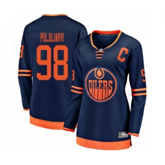 Women's Edmonton Oilers #98 Jesse Puljujarvi Authentic Navy Blue Alternate Fanatics Branded Breakaway Hockey Jersey