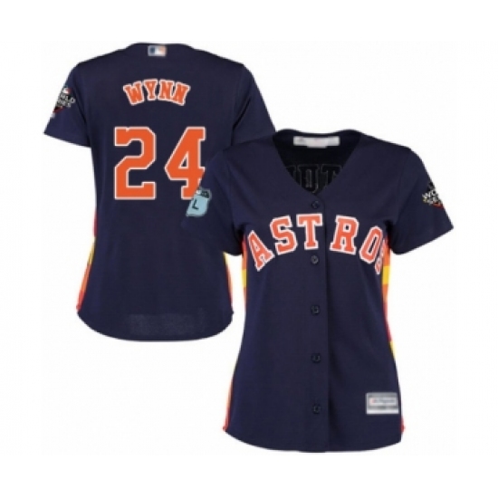 >Women's Houston Astros #24 Jimmy Wynn Authentic Navy Blue Alternate Cool Base 2019 World Series Bound Baseball Jersey