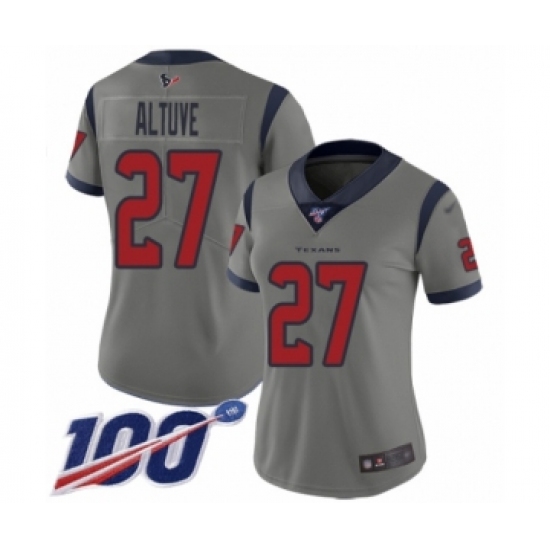 >Women's Houston Texans #27 Jose Altuve Limited Gray Inverted Legend 100th Season Football Jersey