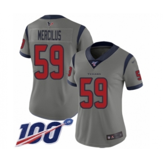 >Women's Houston Texans #59 Whitney Mercilus Limited Gray Inverted Legend 100th Season Football Jersey
