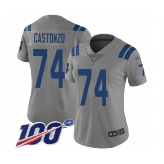 >Women's Indianapolis Colts #74 Anthony Castonzo Limited Gray Inverted Legend 100th Season Football Jersey