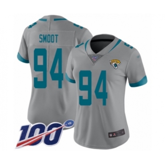 Women's Jacksonville Jaguars #94 Dawuane Smoot Silver Inverted Legend Limited 100th Season Football Jersey