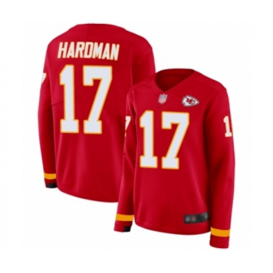 >Women's Kansas City Chiefs #17 Mecole Hardman Limited Red Therma Long Sleeve Football Jersey