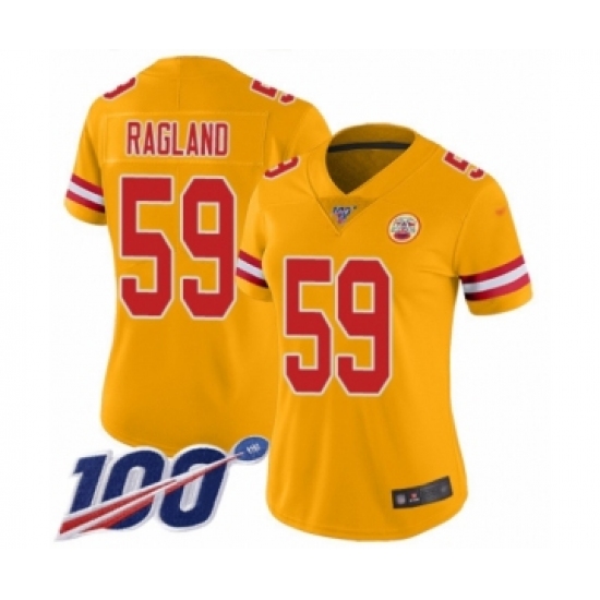 >Women's Kansas City Chiefs #59 Reggie Ragland Limited Gold Inverted Legend 100th Season Football Jersey