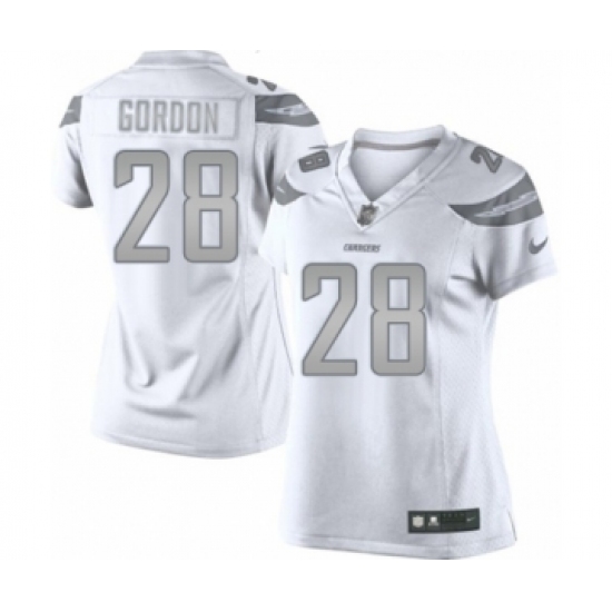 >Women's Los Angeles Chargers #25 Melvin Gordon Limited White Platinum Football Jersey
