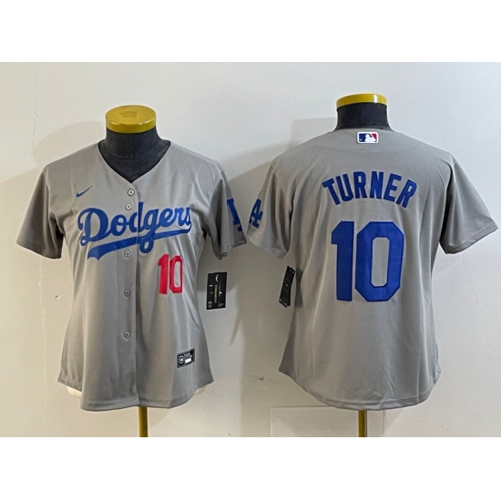 Women's Los Angeles Dodgers #10 Justin Turner Number Grey Cool Base Stitched Nike Jersey